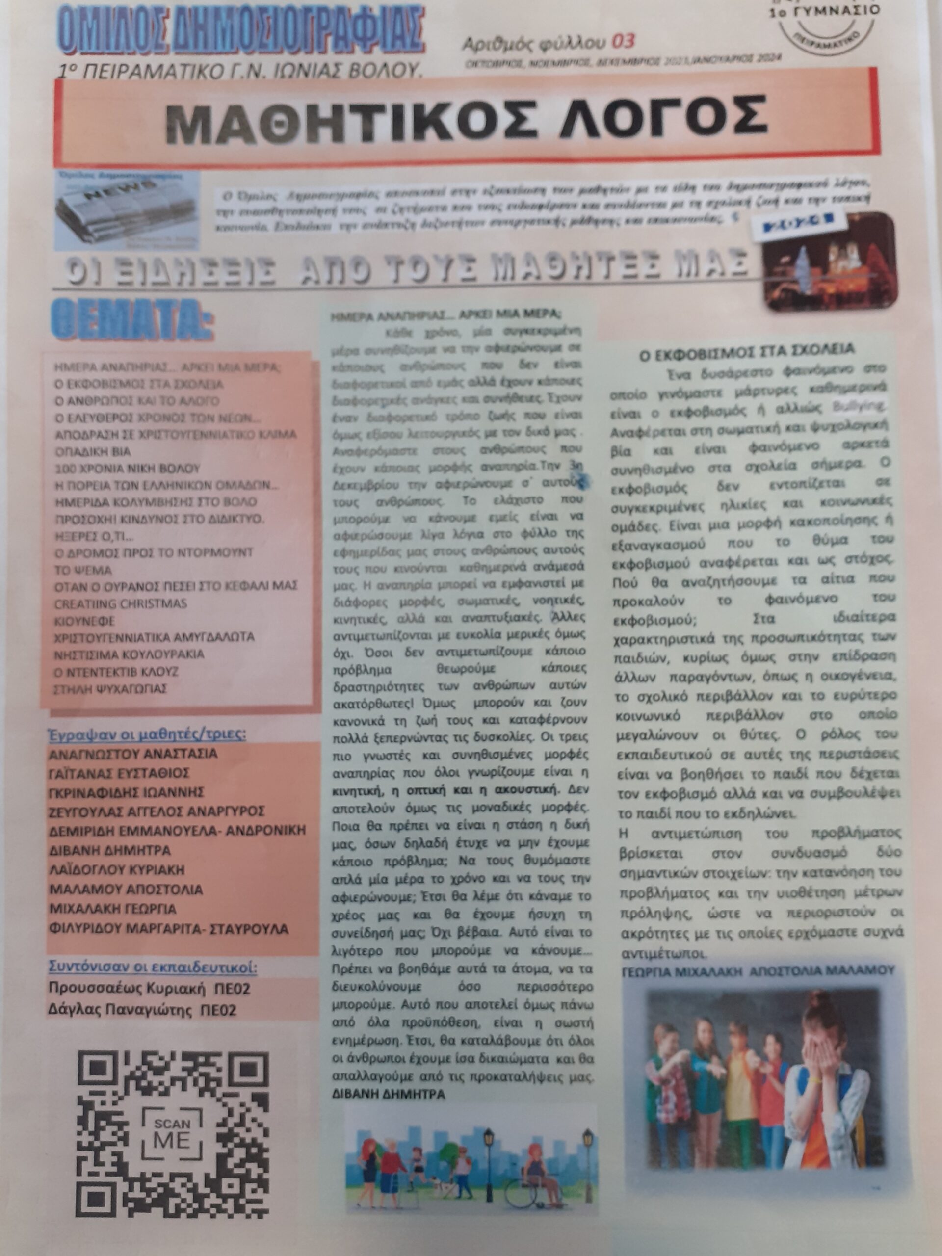 Για μαθήτριες και μαθητές του Ομίλου Δημοσιογραφίας, του 1ου Πειραματικού Γυμνασίου Ν. Ιωνίας