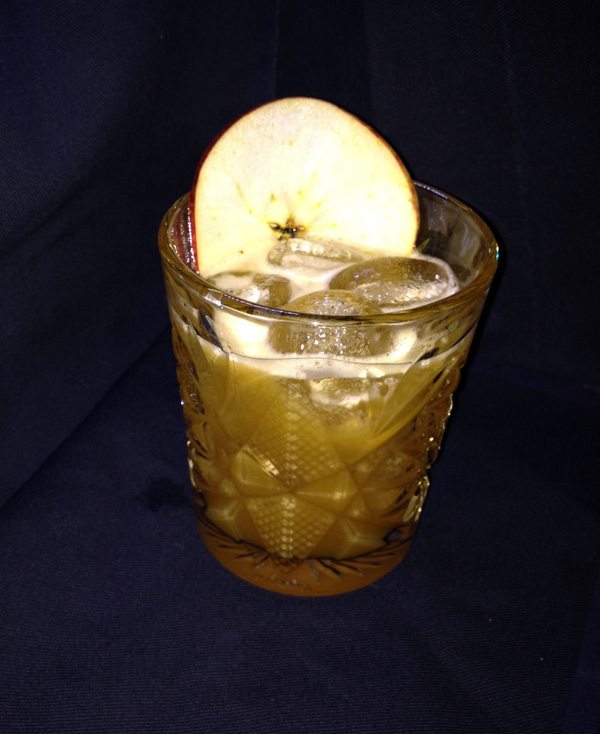 Χτυπάμε σε ένα σέικερ όλα τα συστατικά μαζί με 5-6 πάγους. Σουρώνουμε σε ποτήρι double old fashioned με πάγο και διακοσμούμε με μια φέτα μήλου.