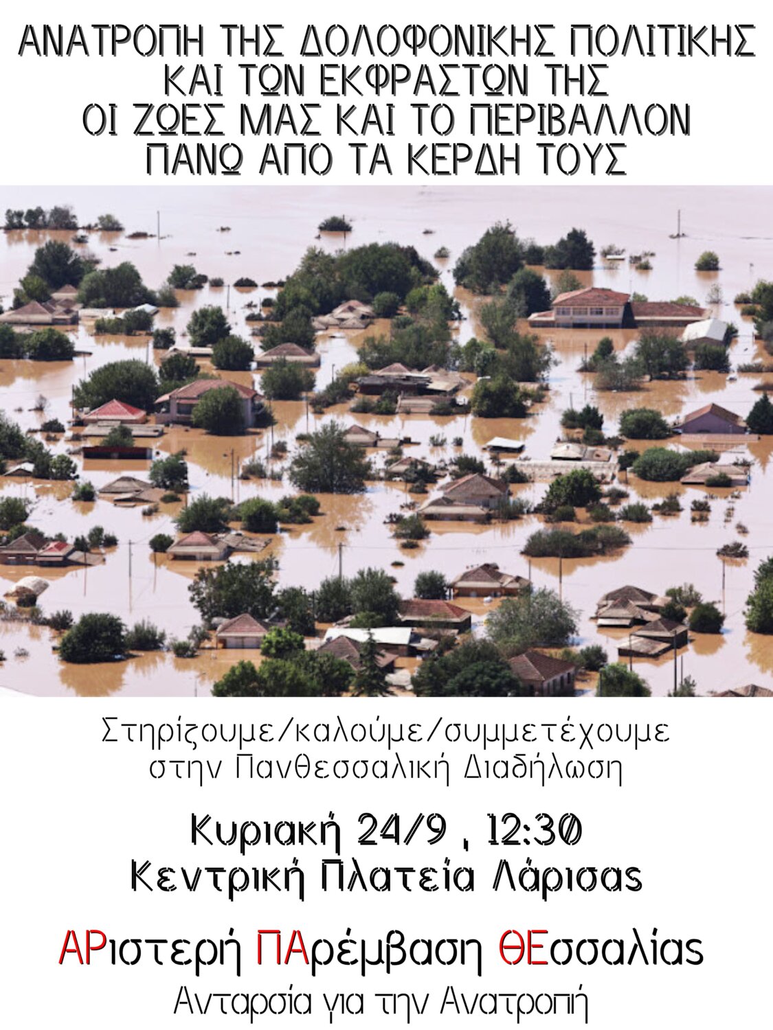 Δεν ξεχνούμε πως τα βασικά αίτια δεν βρίσκονται στην «κακιά στιγμή», αλλά κρύβονται στην διαρκή ανάγκη αυξημένης κερδοφορίας του καπιταλισμού που μετατρέποντας σε εμπόρευμα τα πάντα, οδηγεί στην ανυπαρξία αντιπλημμυρικών έργων κοινής ωφέλειας.