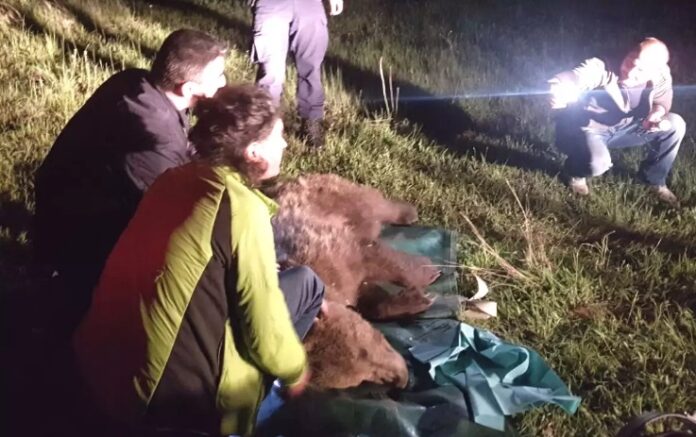 Κλιμάκιο ειδικών, στο πλαίσιο του πρωτοκόλλου για την αντιμετώπιση περιστατικών αλληλεπίδρασης ανθρώπου και αρκούδας, προσέγγισε το ζώο και το νάρκωσε. Διαπίστωσαν μάλιστα, όπως αναφέρεται και σε σχετική ανακοίνωση από την «Καλλιστώ», ότι κατά τη διάρκεια του εγκλωβισμού του, το άτυχο ζώο είχε στρεσαριστεί και μασούσε τον κορμό του δέντρου όπου είχε εγκατασταθεί η θηλιά, στην προσπάθειά του να διαφύγει.