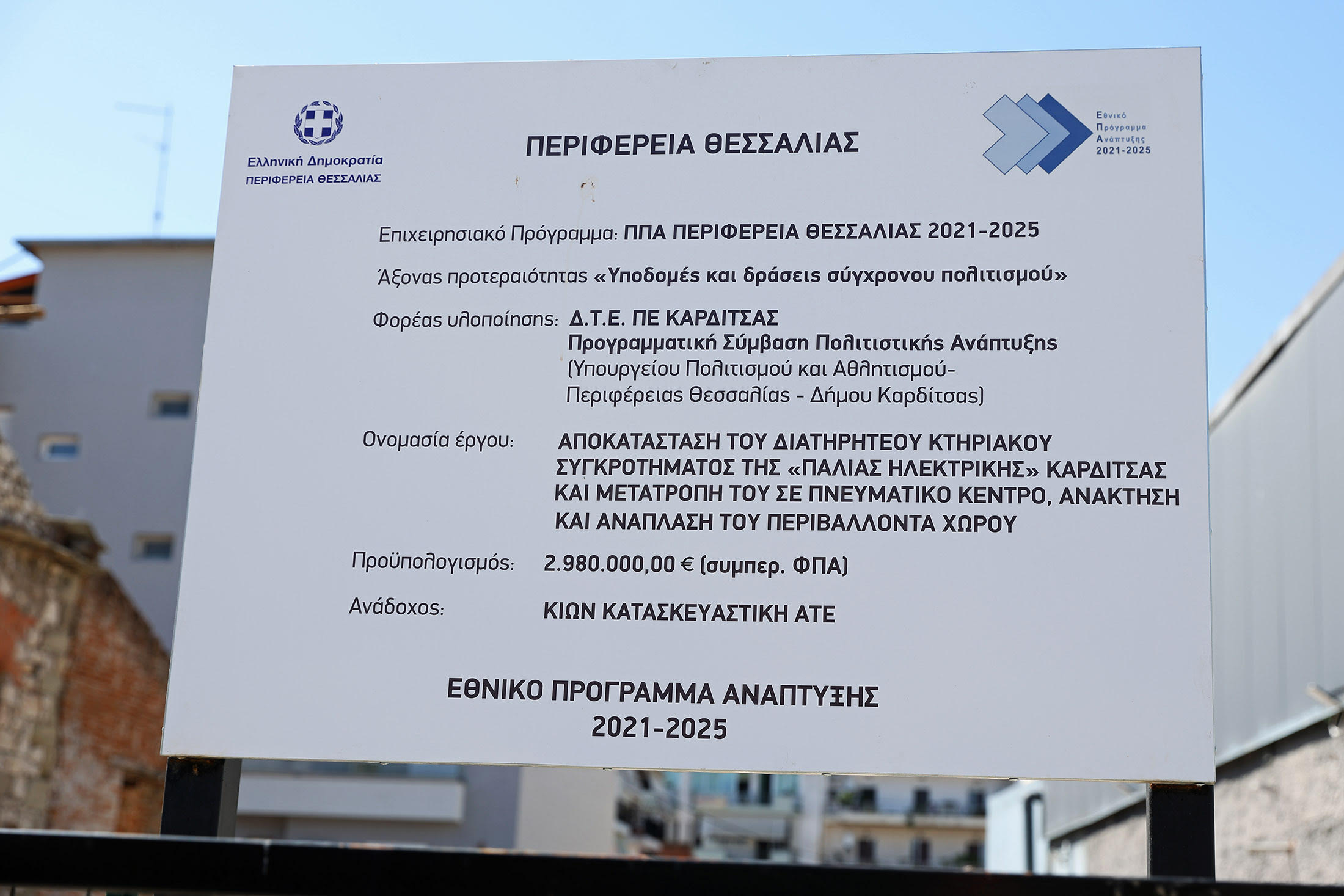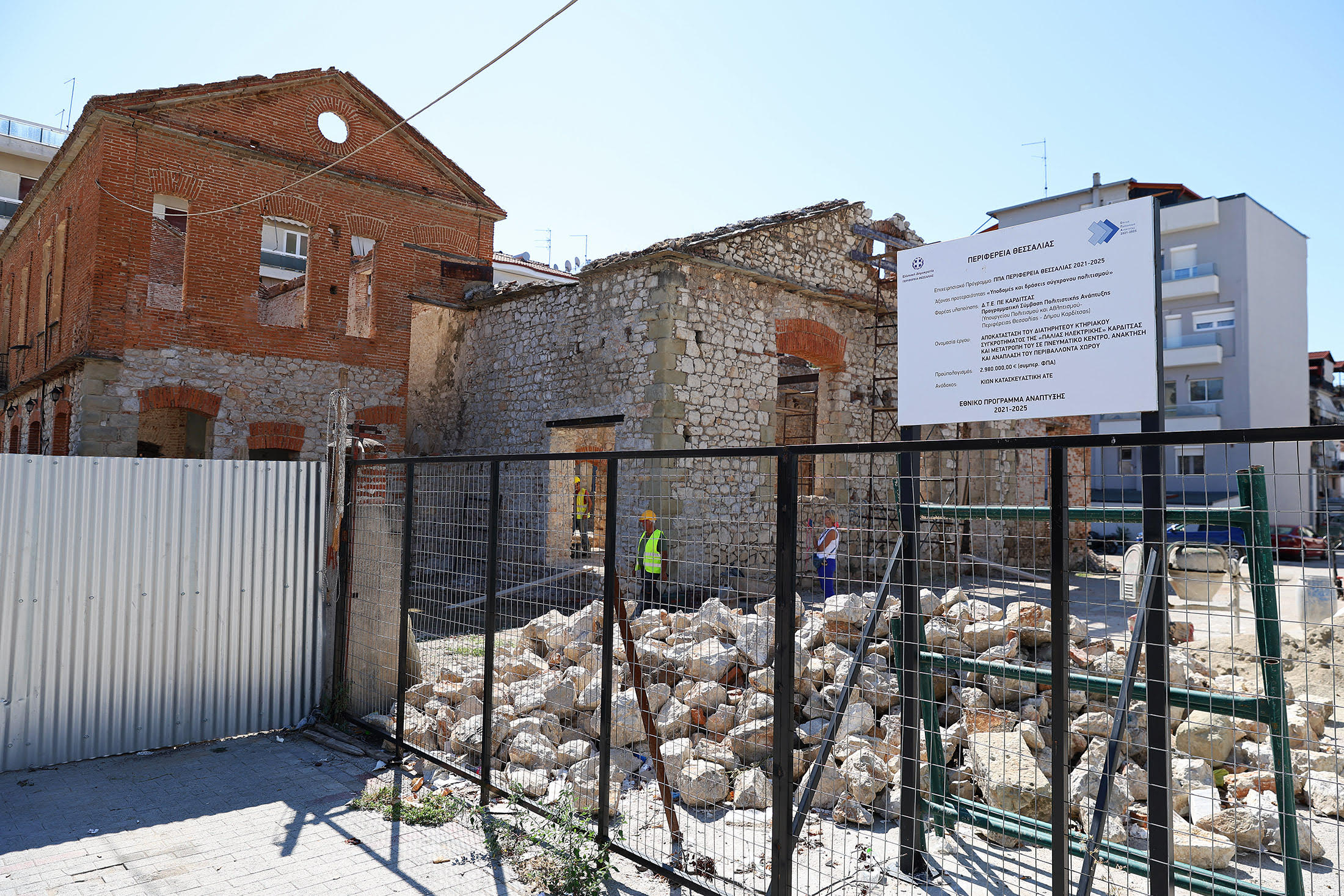 Πρώτος σταθμός της επίσκεψης ήταν το έργο της αποκατάστασης του διατηρητέου βιομηχανικού κτηρίου της παλιάς Ηλεκτρικής και η μετατροπή του σε Πνευματικό Κέντρο.Το έργο συνολικού προϋπολογισμού 2.980.000,00 €, ενταγμένο στο «Περιφερειακό Πρόγραμμα Ανάπτυξης Περιφέρειας Θεσσαλίας 2021-2025», αφορά την αποκατάσταση συγκροτήματος το οποίο από το 2012 αποτελεί ιστορικό μνημείο βιομηχανικής κληρονομιάς, σύμφωνα με απόφαση της Διεύθυνσης Νεότερης και Σύγχρονης Αρχιτεκτονικής Κληρονομιάς του Υπουργείου Πολιτισμού.