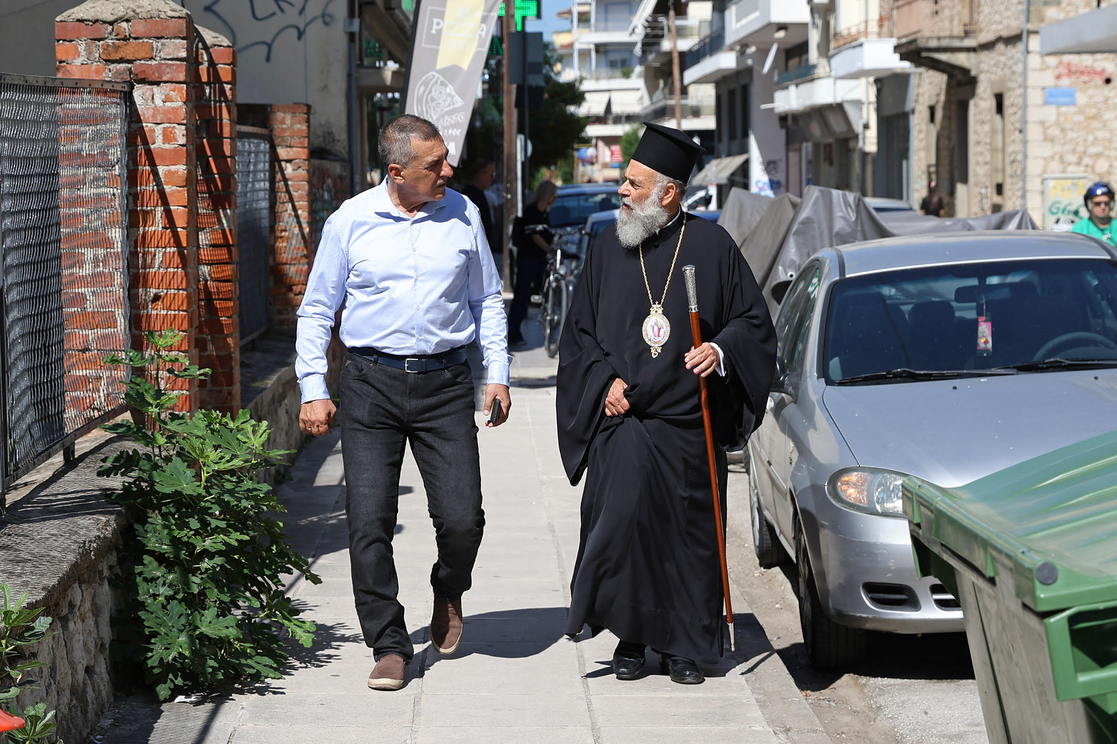 Ακολούθως, ο Περιφερειάρχης Θεσσαλίας Δημήτρης Κουρέτας και ο Σεβασμιώτατος Μητροπολίτης Θεσσαλιώτιδος και Φαναριοφερσάλων κ.κ. Τιμόθεος περιόδευσαν στο κέντρο της Καρδίτσας, όπου είχαν την ευκαιρία να συνομιλήσουν με πολίτες, κυρίως θαμώνες καφέ-καταστημάτων και να συζητήσουν για ζητήματα της πόλης.