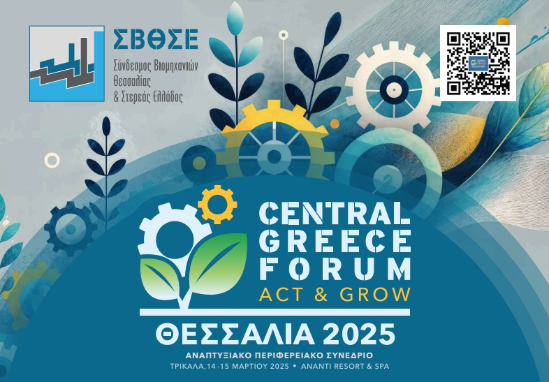 Ο Σύνδεσμος Βιομηχανιών Θεσσαλίας & Στερεάς Ελλάδος – ΣΒΘΣΕ, κορυφαίος εκπρόσωπος της επιχειρηματικής κοινότητας της Κεντρικής Ελλάδας, σας προσκαλεί στο διήμερο Αναπτυξιακό Περιφερειακό Συνέδριο για τη Θεσσαλία, το Central Greece Forum – Θεσσαλία 2025, στις 14 και 15 Μαρτίου 2025 στα Τρίκαλα, στο ξενοδοχείο Ananti Resort & Spa.
