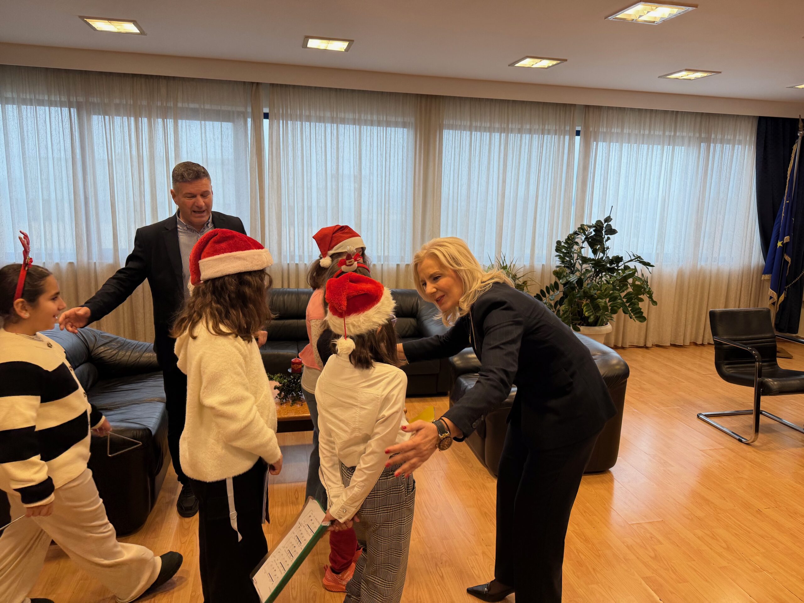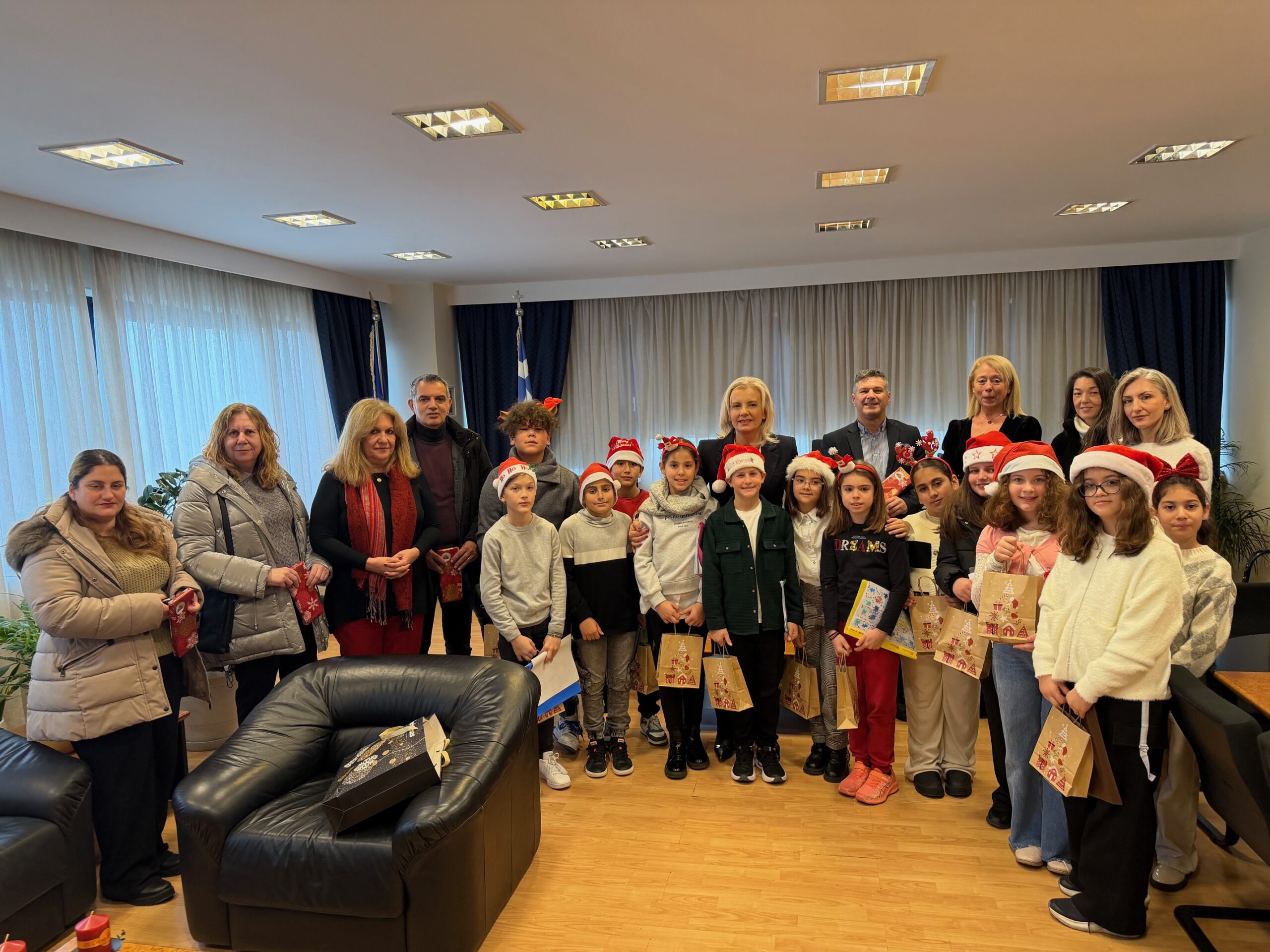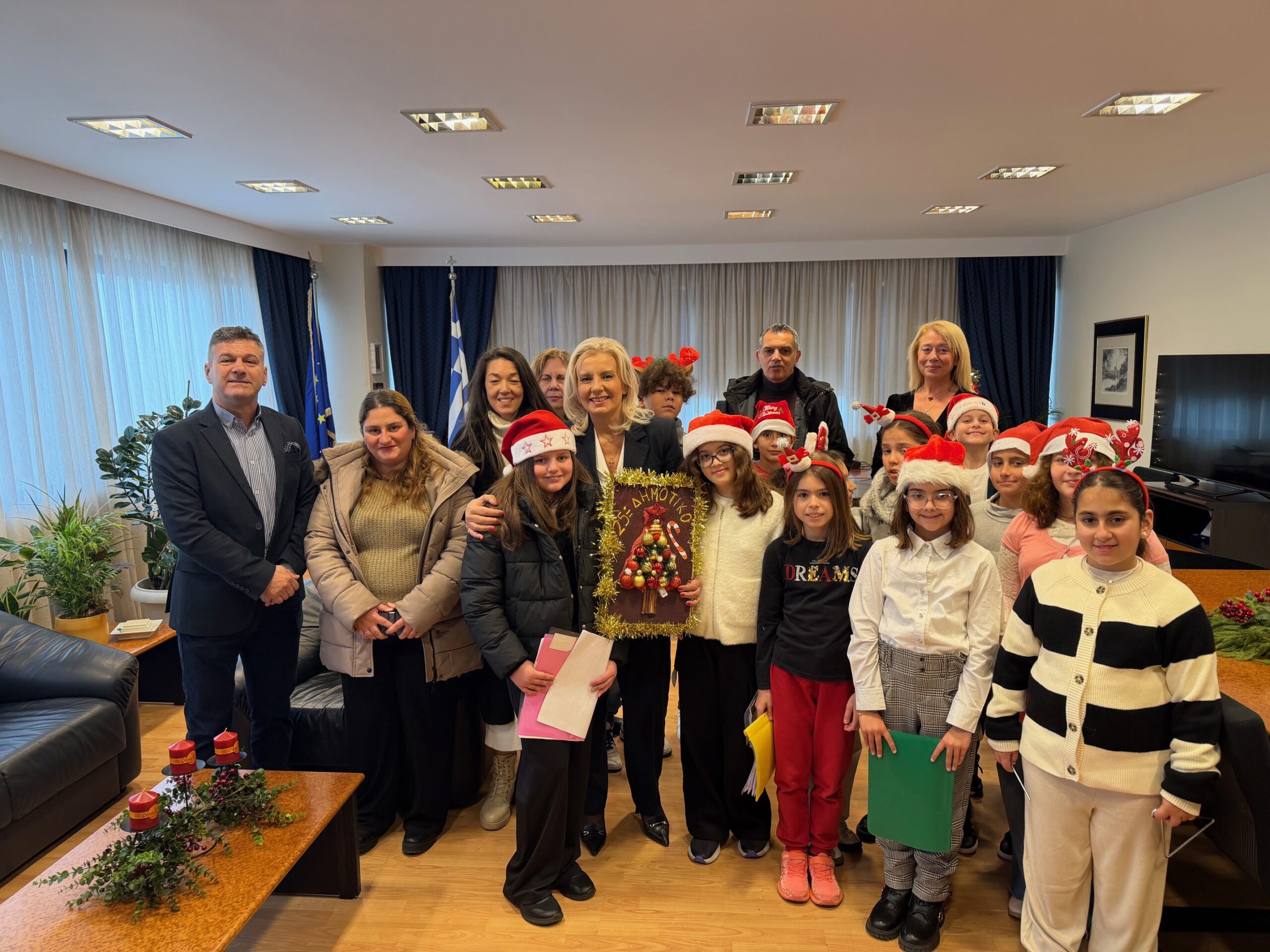 Συγκίνηση, χαμόγελα και παιδικές φωνές πλημμύρισαν το γραφείο της Γενικής Γραμματέως της Αποκεντρωμένης Διοίκησης Θεσσαλίας – Στερεάς Ελλάδας, κας Ρένας Καραλαριώτου, κατά την επίσκεψη μαθητών σχολείων της Λάρισας που έφτασαν για να ψάλουν τα χριστουγεννιάτικα κάλαντα και να μεταφέρουν το αυθεντικό μήνυμα των Χριστουγέννων.