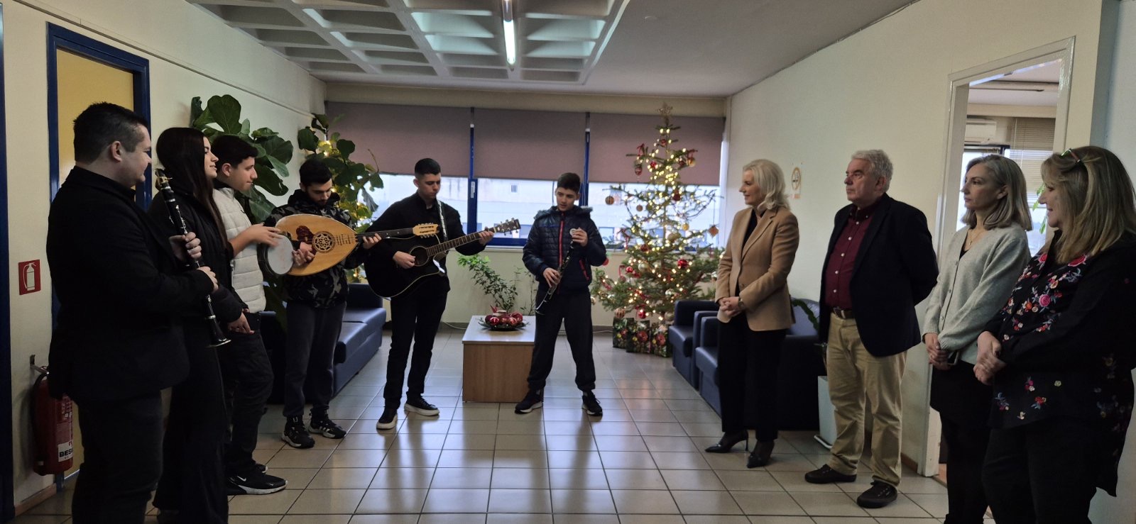 Σήμερα, τα κάλαντα έψαλαν στην Αποκεντρωμένη Διοίκηση οι μαθητές της παραδοσιακής χορωδίας του Μουσικού Σχολείου Λάρισας, οι οποίοι με τις μελωδίες και τις φωνές τους δημιούργησαν μια ιδιαίτερα ζεστή και εορταστική ατμόσφαιρα. Η κα Καραλαριώτου αντάλλαξε ευχές και προσέφερε δώρα στους μαθητές.