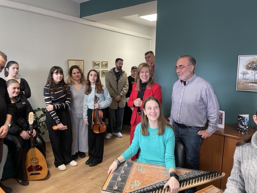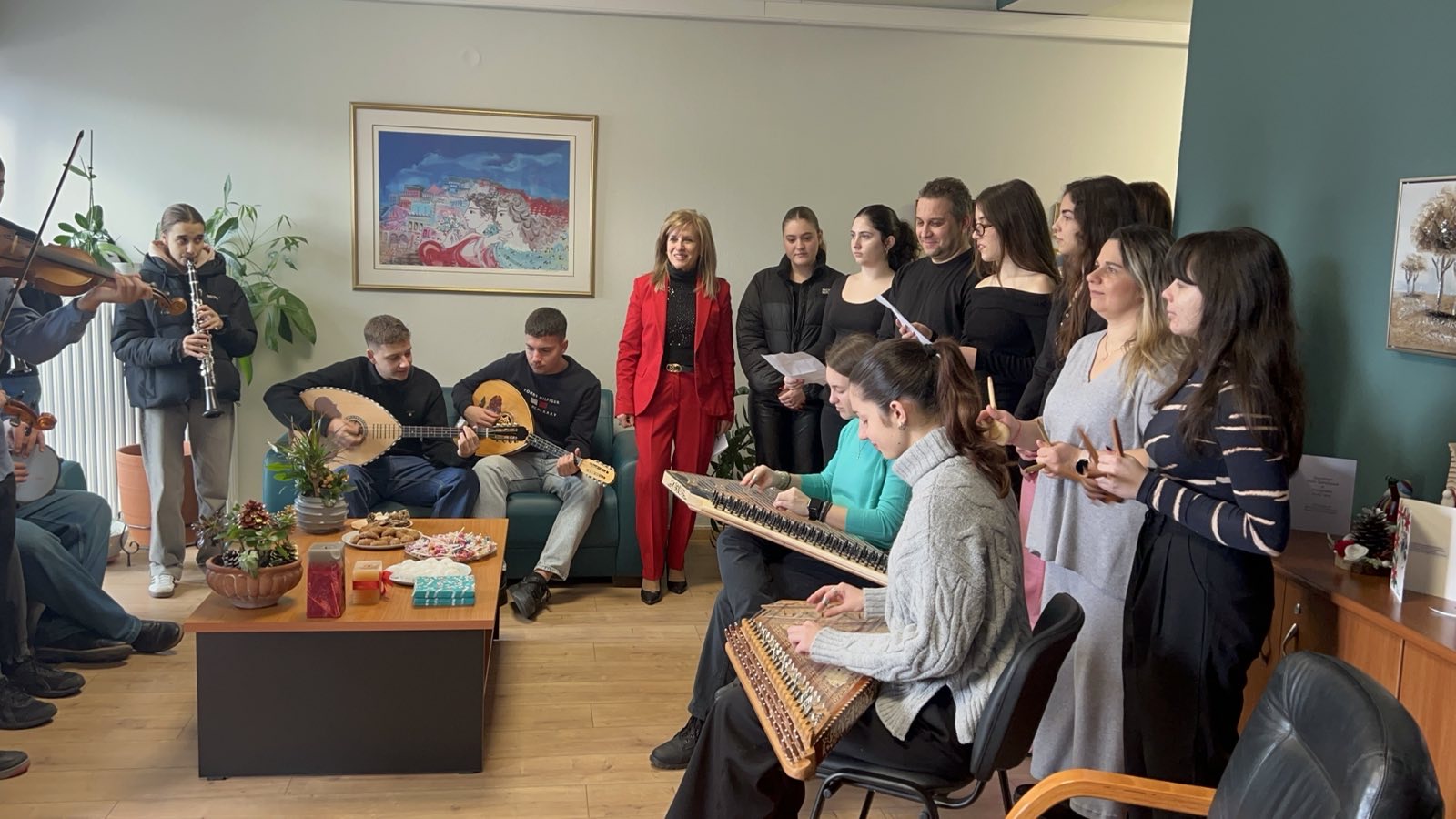 Χριστουγεννιάτικες μελωδίες από τους μαθητές και τις μαθήτριες του Μουσικού Σχολείου Λάρισας, χαμόγελα και ευχές για καλές γιορτές, υγεία, ευτυχία και πρόοδο στο γραφείο της Περιφερειακής Διευθύντριας Εκπαίδευσης Θεσσαλίας.