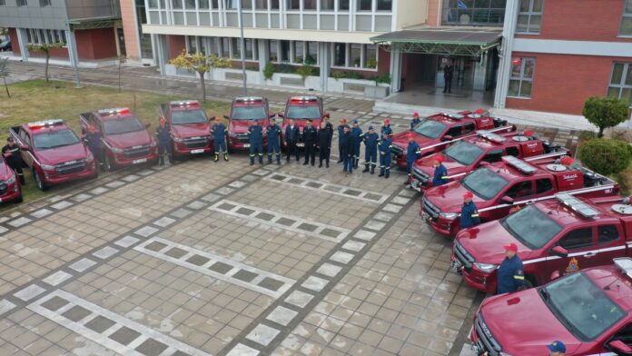 Δεκατέσσερα οχήματα πυροσβεστικού τύπου pick-up 4Χ4,με δεξαμενή νερού 500 λίτρων και για μεταφορά προσωπικού παρέδωσε σήμερα η Περιφέρεια στις πυροσβεστικές υπηρεσίες της Θεσσαλίας. Ακόμη οκτώ νέα πυροσβεστικά οχήματα εξοπλισμένα με δεξαμενές νερού και αφρού χωρητικότητας 4.000 λίτρων παραδόθηκαν το προηγούμενο διάστημα. Συνολικά η Περιφέρεια Θεσσαλίας ενισχύει με είκοσι δύο οχήματα τον στόλο της Πυροσβεστικής στη Θεσσαλία με έργο συνολικού προϋπολογισμού 3,2 εκατ. ευρώ που χρηματοδοτείται από το ΕΣΠΑ Θεσσαλίας 2014 -2020. Η τελετή παράδοσης – παραλαβής πραγματοποιήθηκε σήμερα στη Λάρισα παρουσία του Περιφερειάρχη Θεσσαλίας Κώστα Αγοραστού, του Διοικητή της Περιφερειακής Διοίκησης Πυροσβεστικών Υπηρεσιών (ΠΕ.Π.Υ.Δ.) Θεσσαλίας,, Αρχιπύραρχου Νίκου Μητσογιάννη, του Αντιπεριφερειάρχη Π.Ε. Λάρισας Βασίλη Πινακά και του Αντιπεριφερειαρχή Απόστολου Μπίλλη.
