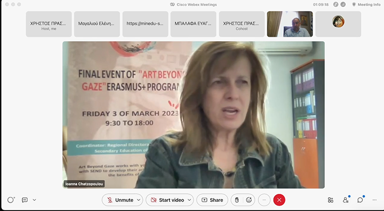 Την εκδήλωση χαιρέτησε η Περιφερειακή Διευθύντρια Εκπαίδευσης Θεσσαλίας, κα Βασιλική Ζιάκα, επισημαίνοντας τη σπουδαιότητα των ευρωπαϊκών προγραμμάτων Erasmus+ τόσο στη διαμόρφωση της ευρωπαϊκής ταυτότητας όσο και στην ανάπτυξη των δεξιοτήτων του 21ου αιώνα καθώς και στην αξιοποίηση καινοτόμων πρακτικών στην εκπαιδευτική πράξη. Επίσης, επισήμανε τη δυνατότητα το παραγόμενο υλικό των ευρωπαϊκών προγραμμάτων των σχολείων της Θεσσαλίας να διατίθεται σε κάθε ενδιαφερόμενο και μέσα από την ιστοσελίδα της Περιφερειακής Διεύθυνσης Εκπαίδευσης Θεσσαλίας (https://thess.pde.sch.gr), διασφαλίζοντας την περαιτέρω βιωσιμότητα των Erasmus+ έργων.