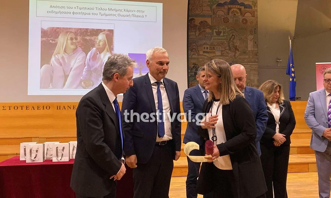 Το ΑΠΘ απέτισε φόρο τιμής στη μνήμη της Θωμαής Πλακιά που σκοτώθηκε σε ηλικία μόλις 19 ετών στη σύγκρουση των δύο τρένων τον Φεβρουάριο του 2023 στο περιθώριο της επετειακής εκδήλωσης που έλαβε χώρα στην Αίθουσα Τελετών του Πανεπιστημίου για τα 70 χρόνια από την ίδρυση του Τμήματος Φαρμακευτικής του Αριστοτελείου, όπως αναφέρει το thestival.gr