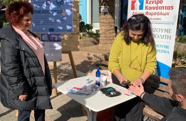 Με επιτυχία πραγματοποιήθηκε την Τρίτη 18 Νοεμβρίου 2025 η Δράση πρόληψης, ενημέρωσης και ευαισθητοποίησης για τον Σακχαρώδη Διαβήτη που διοργάνωσε το Κέντρο Κοινότητας του Δήμου Φαρσάλων σε συνεργασία με το Βοήθεια στο σπίτι και το ΚΕΠ Υγείας Δήμου Φαρσάλων.