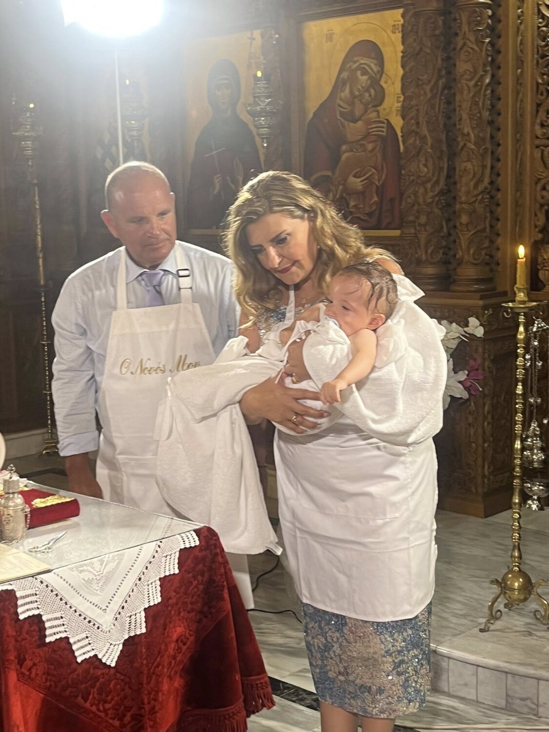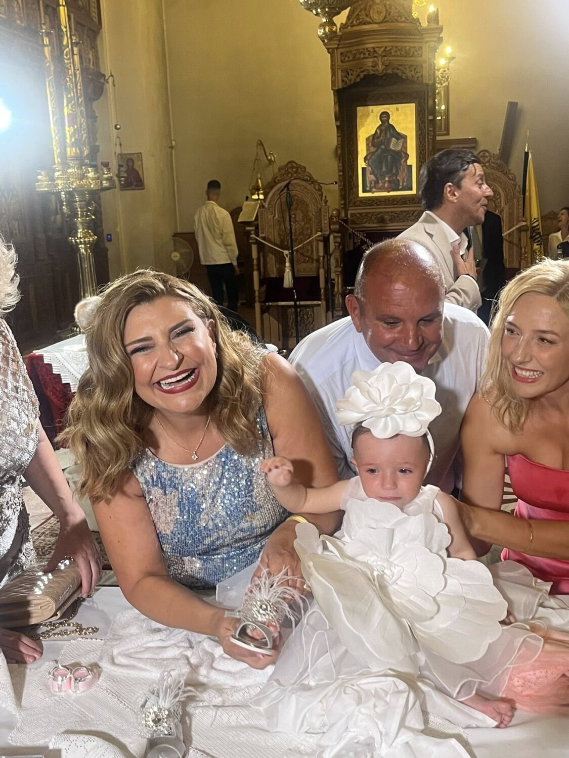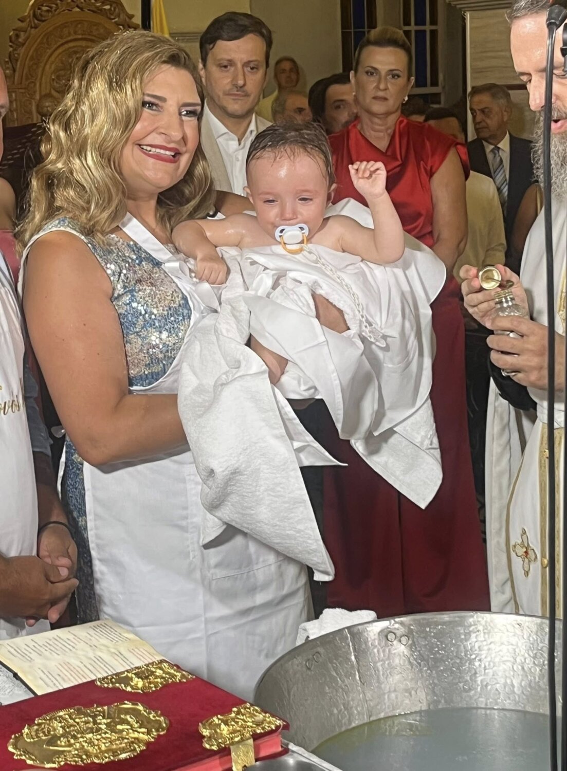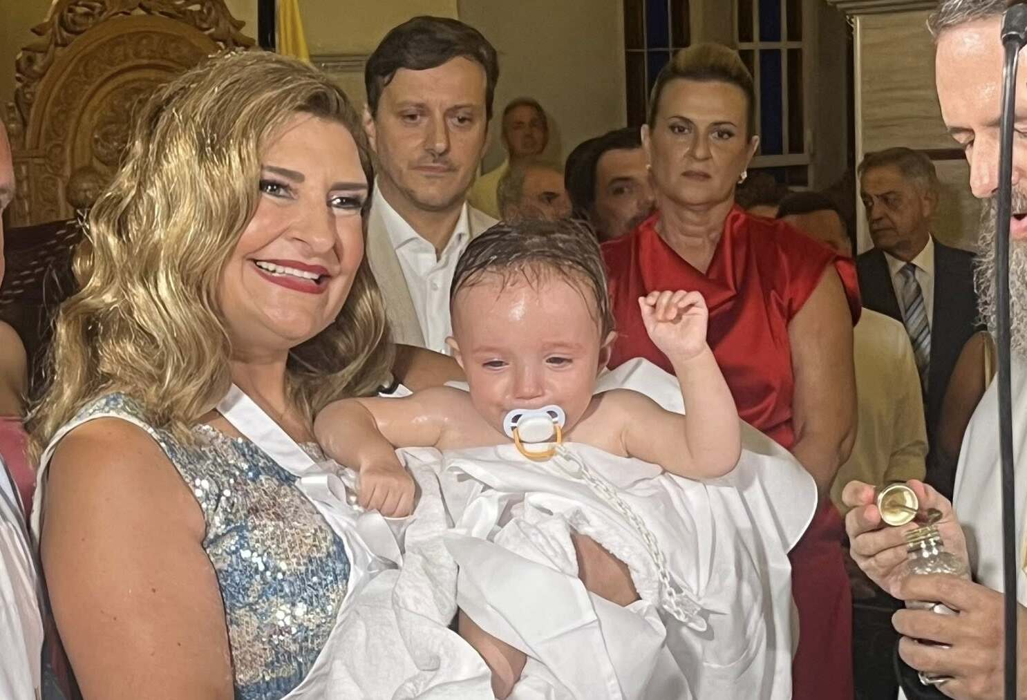 Πανευτυχής νονά η Ευαγγελία Λιακούλη, Τομεάρχης Δικαιοσύνης, Θεσμών & Διαφάνειας του ΠΑΣΟΚ-ΚΙΝΑΛ και βουλευτής Λάρισας στη Χαλκιδική σε μία βάπτιση και με πολιτικά πηγαδάκια.
