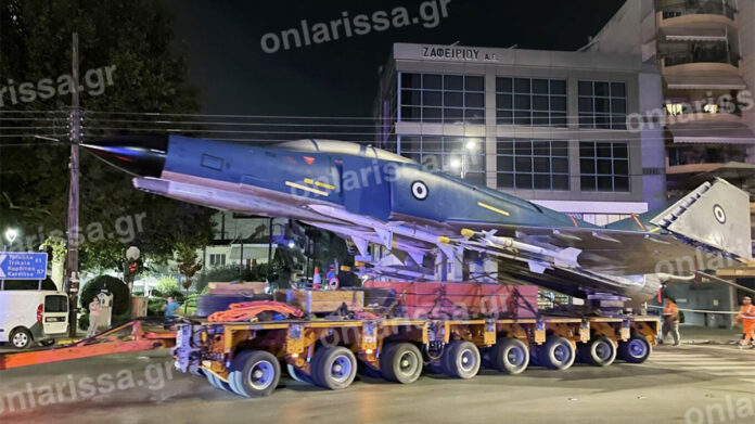 Με το… στόμα ανοιχτό έμειναν σήμερα τα ξημερώματα κάτοικοι της Λάρισας που παρακολουθούσαν ένα επιβλητικό μαχητικό αεροσκάφος RF-4E Phantom II να διασχίζει τους δρόμους της πόλης πάνω σε ειδική πλατφόρμα.