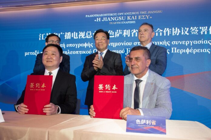 Το πρώτο σημαντικό βήμα για την Πολιτιστική Τουριστική και Αναπτυξιακή συνεργασία μεταξύ της Περιφέρειας Θεσσαλίας και της επαρχίας Jiangsu της Κίνας είναι γεγονός . Ο Περιφερειάρχης Θεσσαλίας υπέγραψε σε εκδήλωση στο Μουσείο Κυκλαδικής Τέχνης στην Αθήνα, Μνημόνιο Συνεργασίας με τον Πρόεδρο του Ραδιοτηλεοπτικού Φορέα της Jiangsu.