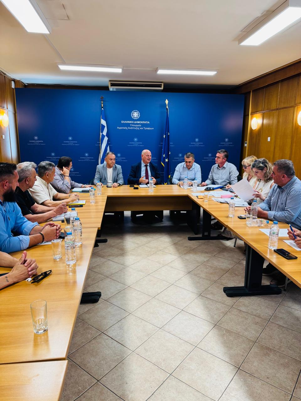 Στη συνέχεια πραγματοποιήθηκε διεξοδική συζήτηση, μέσα σε καλό κλίμα για συγκεκριμένα αιτήματα που αποτυπώθηκαν σε υπόμνημα της Περιφέρειας Θεσσαλίας και αφορούσαν λεπτομέρειες για την ενίσχυση των πληγέντων μετακινούμενων κτηνοτρόφων, τις θανατωθείσες εκτροφές και γενικά το σύνολο των πληγέντων κτηνοτρόφων με προτάσεις, όπως: πάγωμα όλων των φορολογικών υποχρεώσεων,των ΔΕΚΟ και ΕΦΚΑ και των κατασχέσεων και πλειστηριασμών για τα επόμενα 2 χρόνια.