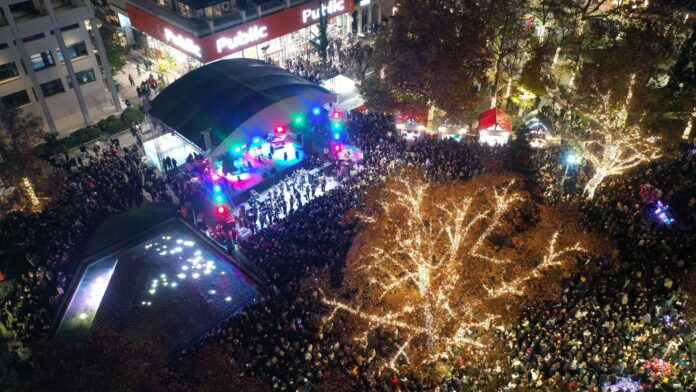 «Απόψε, αφήστε τη μαγεία των Χριστουγέννων να σας αγγίξει. Να περάσετε όμορφα, να διασκεδάσετε, να χαμογελάσετε. Γιατί η πόλη μας λάμπει — και λάμπει χάρη σε εσάς.Καλά Χριστούγεννα, καλή χρονιά, με υγεία, χαρά και δύναμη για όλους!», ευχήθηκε ο κ.Μαμάκος, λίγο πριν πατήσει το button, που σκόρπισε λάμψη και φως στο κέντρο της πόλης.