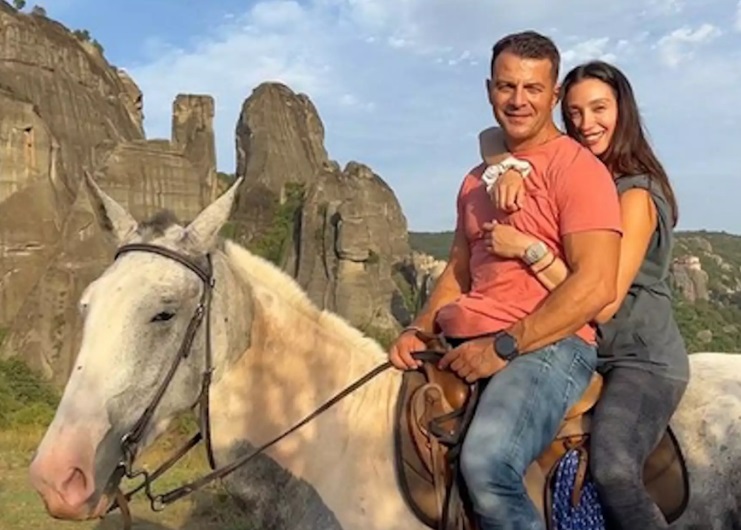 Γιώργος Αγγελόπουλος και Δήμητρα Βαμβακούση, ετοιμάζονται για τη βάφτιση του παιδιού τους, που θα γίνει σε λίγες μέρες στην Σκιάθο. Φρόντισαν να γεμίσουν τις μπαταρίες τους, στα Μετέωρα, όπου έκαναν ιππασία.