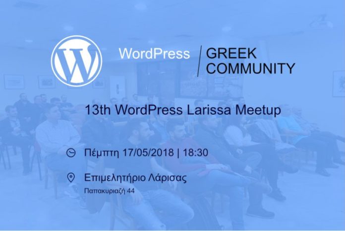Το Επιμελητήριο Λάρισας, (Παπακυριαζή 44), την Πέμπτη 17 Μαΐου 2018 και ώρα 18:30, ανοίγει τις πόρτες του και φιλοξενεί την Ελληνική Κοινότητα του WordPress που ανανεώνει το μηνιαίο ραντεβού της.