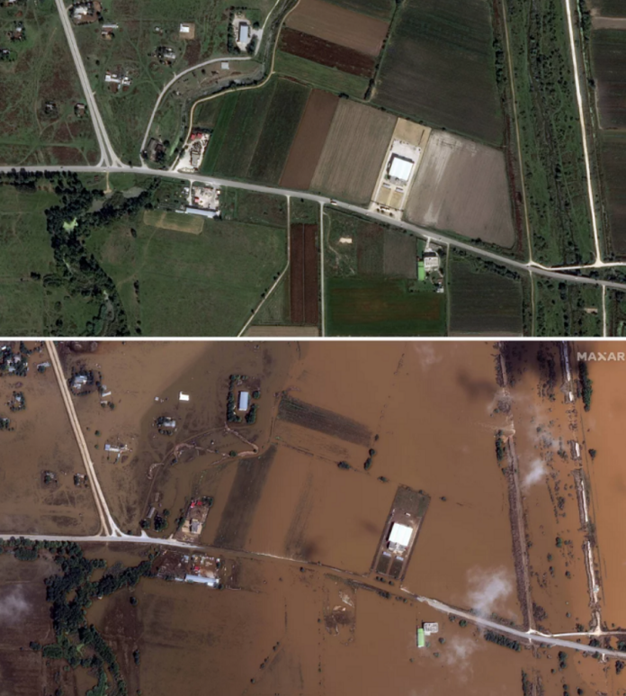 Δορυφορικές εικόνες δείχνουν από ψηλά το μέγεθος της καταστροφής, που έφερε κατά την επέλασή της η κακοκαιρία «Daniel», στους οικισμούς του Παλαμά, της Μεταμόρφωσης, της Αγίας Τριάδας, του χωριού Κοσκινά και σε μια σειρά από οικισμούς και χωριά στον Νομό Καρδίτσας.