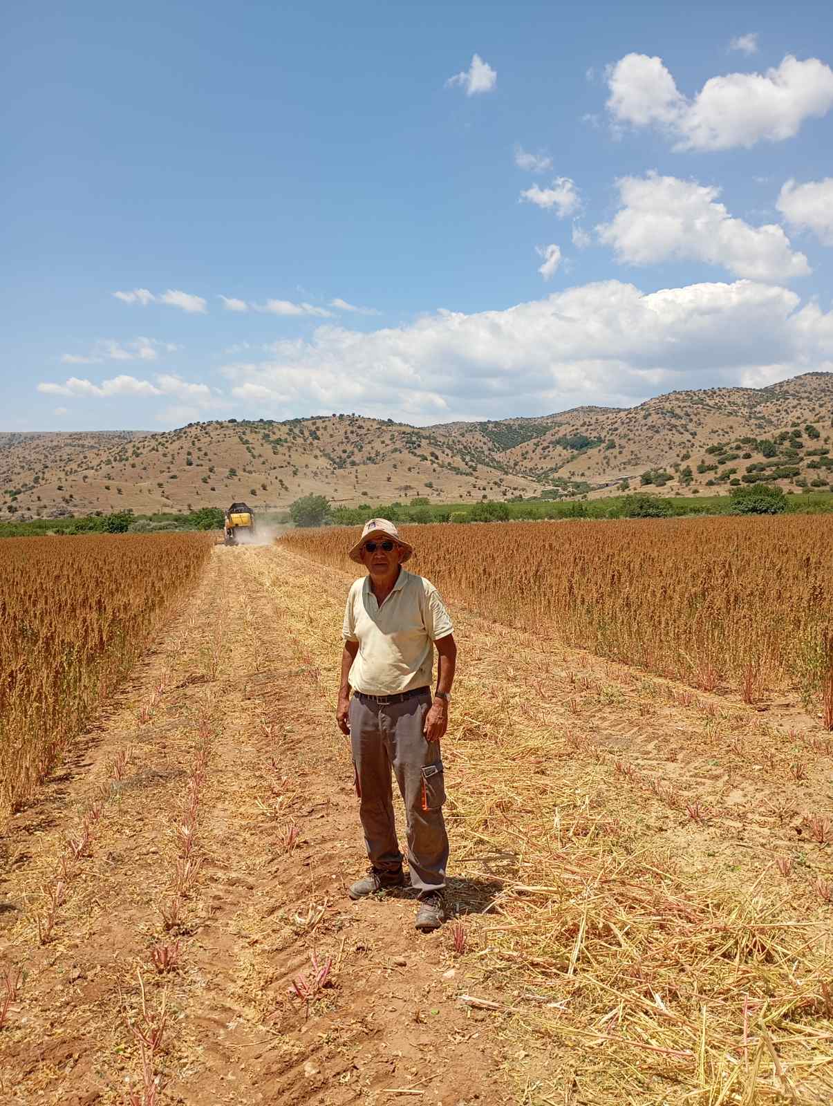 Ο Θανάσης Παπαναγιώτου είναι ένας έμπειρος παραγωγός από το Ζάρκο Τρικάλων, ο οποίος χρόνια τώρα καλλιεργεί τα παραδοσιακά προιόντα του κάμπου, βαμβάκι και σιτάρι. Το 2025 αποφάσισε να πειραματιστεί, επιλέγοντας την κινόα. Έσπειρε αρχές Φεβρουαρίου το ψευδοδημητριακό σε 30 στρέμματα και τέλος Ιουνίου συγκόμισε 270 kg το στρέμμα. Σήμερα δηλώνει δικαιωμένος για την επιλογή του και πεπεισμένος ότι μπορεί να επενδύσει σε μία καλλιέργεια προσοδοφόρα, καθώς η κινόα έχει μικρό καλλιεργητικό κύκλο, είναι ξεκούραστη, με μικρό κόστος παραγωγής (δεν θέλει φυτοφάρμακα ή ζιζανιοκτονία) και το κυριότερο δεν υπάρχει άγχος, όπως αυτό που βιώνει με το σιτάρι, που δεν ξέρεις σε ποιον και με ποια τιμή θα πουλήσεις το προϊόν.