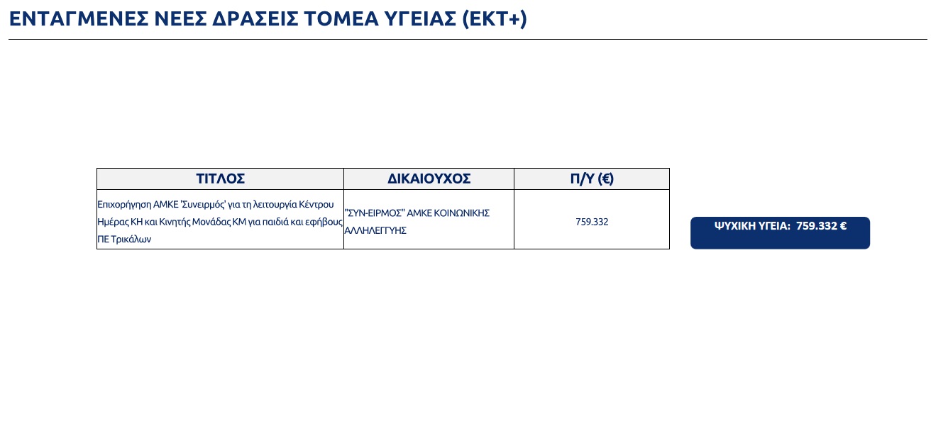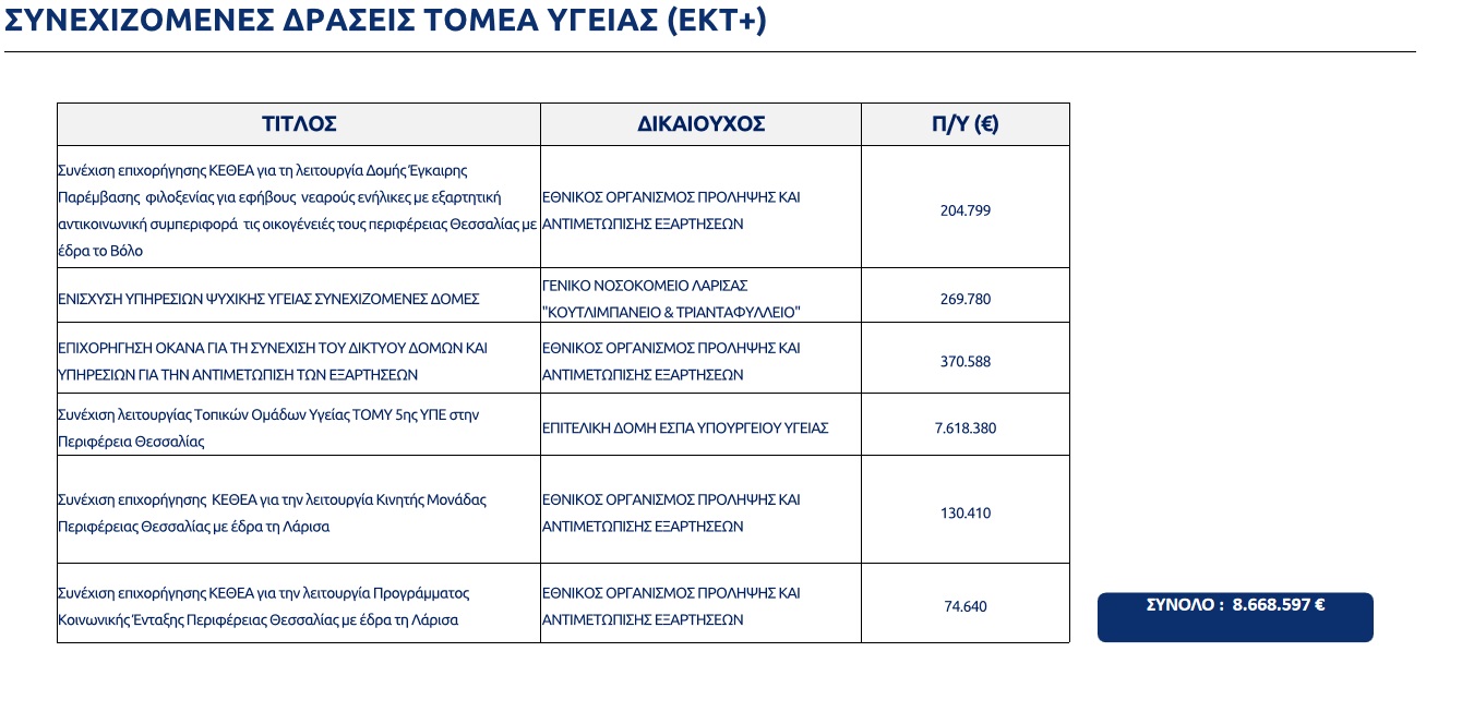 ΤΑ ΝΕΑ ΕΡΓΑ ΤΗΣ ΠΡΟΣΚΛΗΣΗΣ 28 ΓΙΑ «ΥΠΟΔΟΜΕΣ ΚΑΙ ΕΞΟΠΛΙΣΜΟΙ ΠΡΩΤΟΒΑΘΜΙΑΣ ΦΡΟΝΤΙΔΑΣ ΥΓΕΙΑΣ