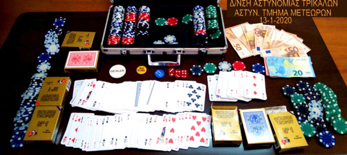 Στο πλαίσιο στοχευμένων ελέγχων για την καταπολέμηση της διεξαγωγής παράνομων τυχερών παιγνίων, συνελήφθησαν χθες το μεσημέρι στην Καλαμπάκα, από αστυνομικούς του Αστυνομικού Τμήματος Μετεώρων σε συνεργασία με αστυνομικούς της Ομάδας Πρόληψης και Καταστολής Εγκληματικότητας (Ο.Π.Κ.Ε.) Τρικάλων, έξι άτομα, ηλικίας από 39 έως 66 ετών, σε βάρος των οποίων σχηματίστηκε δικογραφία για τα, κατά περίπτωση, αδικήματα της παράβασης του νόμου περί παιγνίων και της αντίστασης.