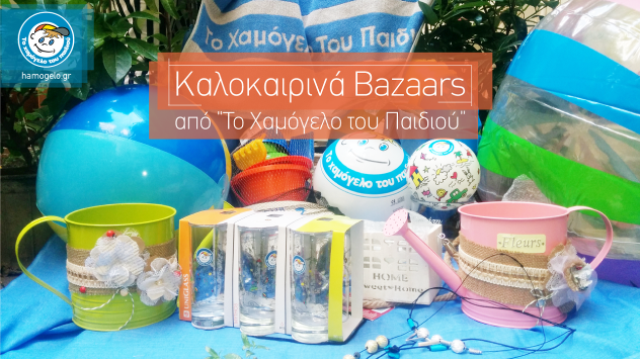 Στα καλοκαιρινά bazaars μπορείτε να βρείτε: πετσέτες θαλάσσης, κουβαδάκια, ρακέτες, στρώματα θαλάσσης, λογοτυπημένα είδη του Οργανισμού (μπουκάλια, ποτήρια, κούπες), ενδοϋφασμένες πετσέτες, μπάλες, μπλοκ ζωγραφικής, μαρκαδόρους, ξυλομπογιές, τετράδια, καθώς και διακοσμητικά και είδη σπιτιού.