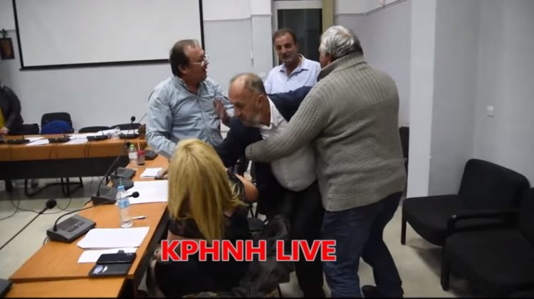 Απίστευτες εικόνες στη χθεσινοβραδινή συνεδρίαση του Δημοτικού Συμβουλίου Φαρκαδόνας. Όπως καταγράφει το trikalavoice.gr η ένταση προκλήθηκε μεταξύ του δημάρχου Θανάση Μεριβάκη και της ανεξάρτητης εδώ και λίγο καιρό δημοτικής συμβούλου, Ελένης Στεργίου-Μπότη, όταν η τελευταία έκανε αναφορές και στις οφειλές του δημάρχου προς τη ΔΕΥΑΦ. Ο δήμαρχος εξερράγη απαίτησε δημόσια συγνώμη και συγκρατήθηκε από άλλους δημοτικούς συμβούλους, ενώ απείλησε με μηνύσεις. Στο Δημαρχείο έφτασε και ο σύζυγος της Ελένης Στεργίου-Μπότη, Σάκης Μπότης, ο οποίος διέκοψε τη συνεδρίαση του Δ.Σ. επιτιθέμενος στον δήμαρχο, ο οποίος πάλι σηκώθηκε να απαντήσει, ενώ έκανε αναφορές σε «επιστολή του ζεύγους Μπότη στο σπίτι μου την οποία θα βγάλω στον αέρα».