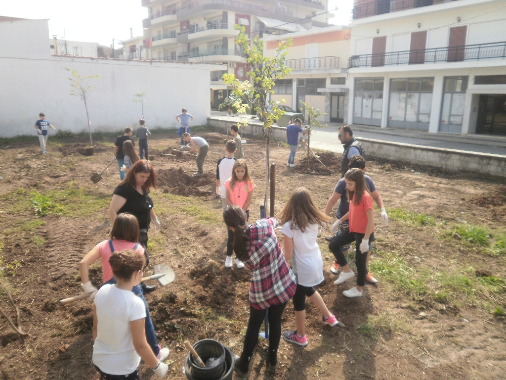 Η αρχή έγινε από την περιοχή των Καμινάδων και συγκεκριμένα σε έναν κενό γωνιακό χώρο απέναντι από την πλατεία (στην οδό Σωτήρος με Κονδύλη) που ήταν ανεκμετάλλευτος και χωρίς ίχνος πρασίνου. Οι μαθητές, που συνοδεύονταν από τη δασκάλα τους, ανέλαβαν τη διαμόρφωση και ΄΄υιοθέτηση΄΄ του συγκεκριμένου χώρου φυτεύοντας 7 διαφορετικά είδη φυτών (ένα σφενδάμι, τρία λιγούστρια, δύο κουτσουπιές και μία κερλετέρια).