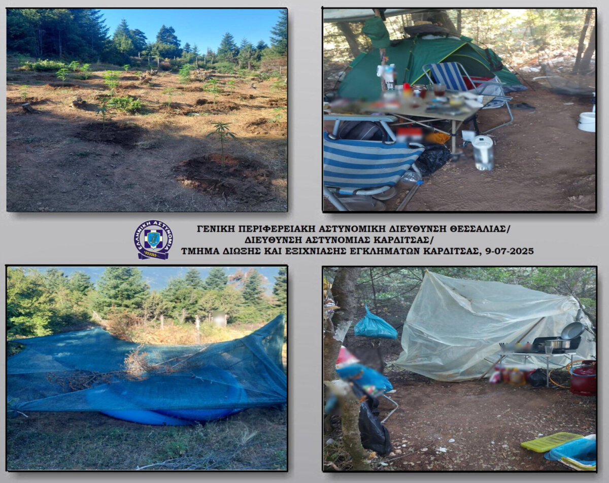 Ειδικότερα, μετά από κατάλληλη αξιοποίηση στοιχείων, χθες πραγματοποιήθηκε συντονισμένη αστυνομική επιχείρηση από αστυνομικούς της Ομάδας Δίωξης Ναρκωτικών και της Ομάδας Πρόληψης και Καταστολής Εγκληματικότητας (Ο.Π.Κ.Ε.) του Τμήματος Δίωξης και Εξιχνίασης Εγκλημάτων Καρδίτσας, κατά την οποία εντοπίστηκε ειδικά διαμορφωμένος χώρος όπου καλλιεργούνταν δενδρύλλια κάνναβης, σε έκταση περίπου ενός στρέμματος, ενώ στον χώρο είχαν εγκαταστήσει διάφορα σύνεργα πρόσφορα για την καλλιέργεια των δενδρυλλίων,