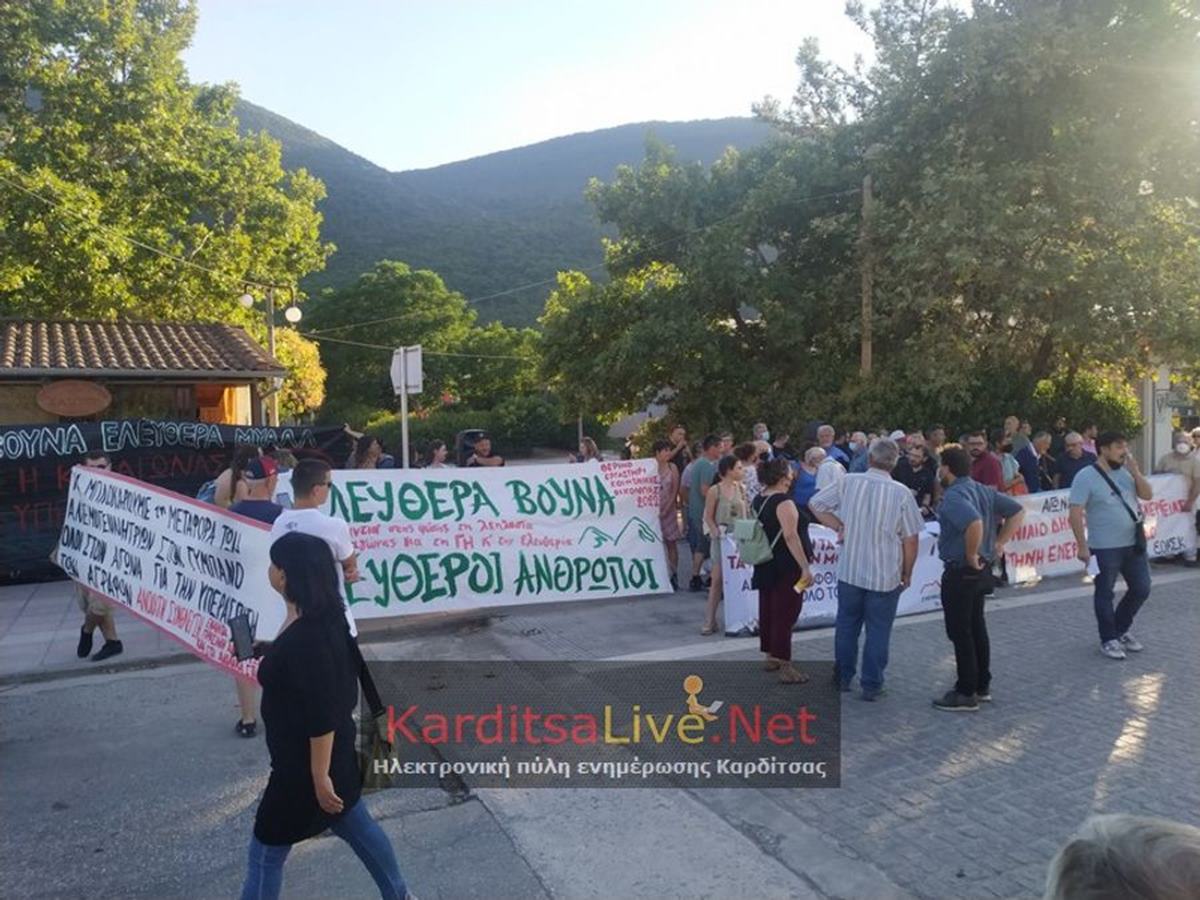 Μαζική κινητοποίηση πραγματοποιήθηκε το απόγευμα της Τρίτης 2 Αυγούστου στο Μουζάκι, στο σημείο διέλευσης του υλικού που προορίζεται για τα αιολικά στην περιοχή του Τυμπάνου από φορεία και σωματεία και στο πλαίσιο των κινητοποιήσεων που αποφασίστηκαν στη σύσκεψη που προηγήθηκε το περασμένο Σάββατο στο Μουζάκι.