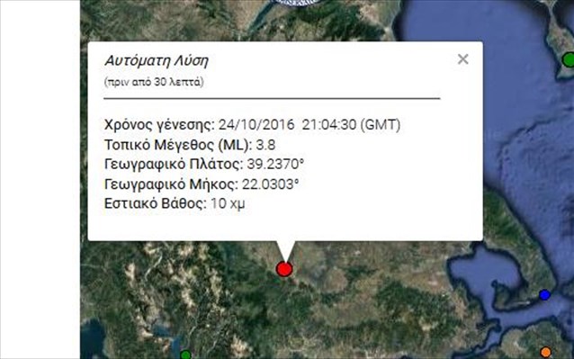 Σεισμική δόνηση μεγέθους 3,8 βαθμών της κλίμακας Ρίχτερ σημειώθηκε τέσσερα λεπτά μετά τα μεσάνυχτα στον νομό Καρδίτσας, σύμφωνα με την πρώτη εκτίμηση του Γεωδυναμικού Ινστιτούτο του Εθνικού Αστεροσκοπείο Αθηνών.