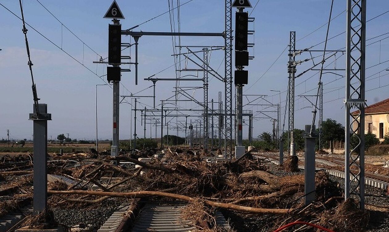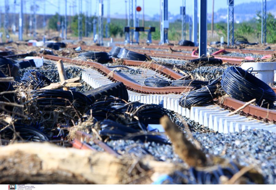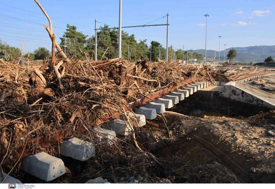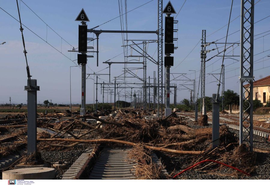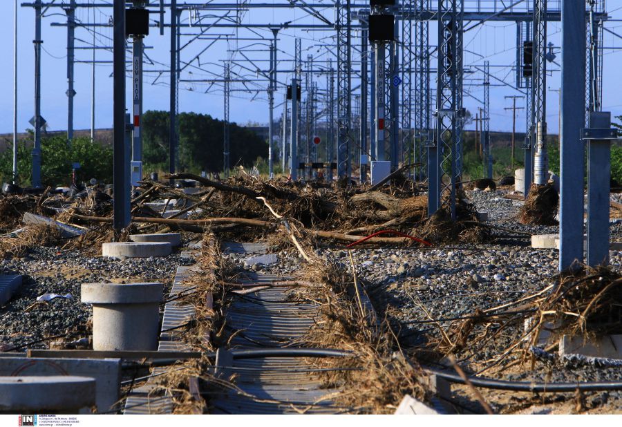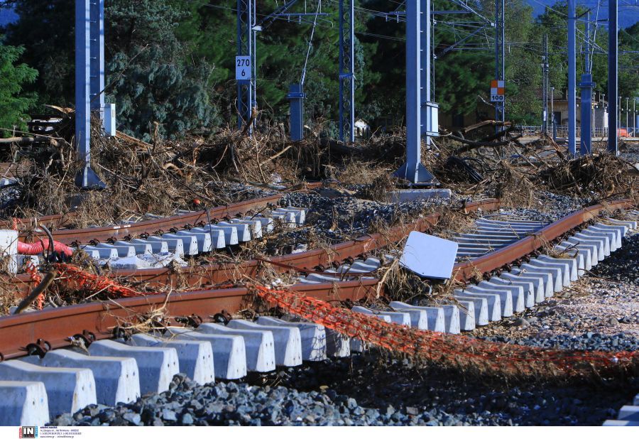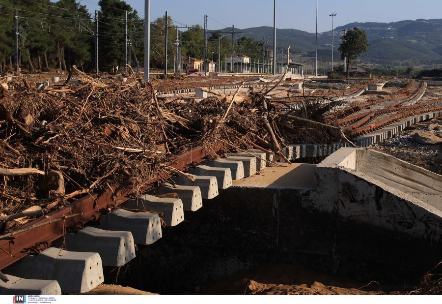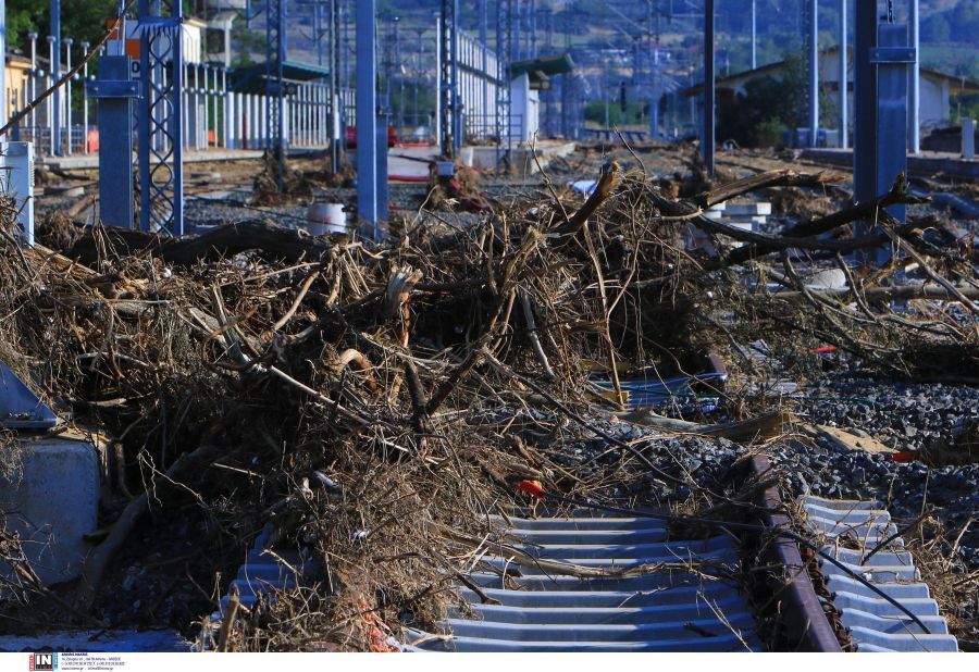 Οι γραμμές των τρένων είναι θαμμένες στη λάσπη, τεράστια μπάζα έχουν παρασυρθεί σε όλο το σιδηροδρομικό δίκτυο, ενώ στο σταθμό του Δομοκού οι ράγες είναι στο αέρα, αφού το έδαφος κάτω από τις γραμμές του τρένου έχει υποχωρήσει.