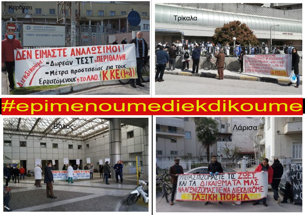 Οι οργανώσεις Θεσσαλίας του ΚΚΕ (μ-λ) και η Ταξική Πορεία πήραν μέρος σε όλες τις συγκεντρώσεις σε Λάρισα, Βόλο, Τρίκαλα και Καρδίτσα ενισχύοντας το μέτωπο πάλης και αλληλεγγύης υγειονομικών και λαού ενάντια στην αντιλαϊκή πολιτική της κυβέρνησης απέναντι στην απειλή της πανδημίας.