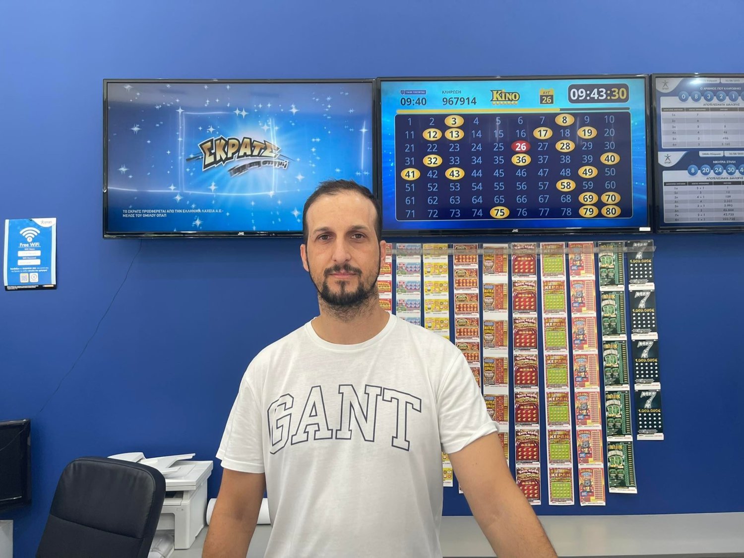 Το larissanet.gr βρέθηκε στο πρακτορείο ΟΠΑΠ (Φαρσάλων 61), όπου παίχθηκε το «χρυσό» δελτίο με τον ιδιοκτήτη Δημήτρη Παλαμίδα να δίνει τις πρώτες πληροφορίες: