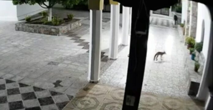 Σε βίντεο που έδωσε στη δημοσιότητα ο εφημέριος του ναού, πατήρ Νικόλαος Κιούσης, φαίνεται μία αλεπού καν κάνει βόλτες στον προαύλιο χώρο ξημερώματα.