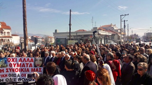 Διαμαρτυρία εκατοντάδων κατοίκων της περιοχής Αγίου Γεωργίου της Λάρισας πραγματοποιήθηκε σήμερα στην οδό Βόλου και συγκεκριμένα στην περιοχή όπου την περασμένη εβδομάδα παρασύρθηκε και έχασε την ζωή της από φορτηγό η 28χρονη ποδηλάτισσα Πωλίνα Τσαπακίδου.