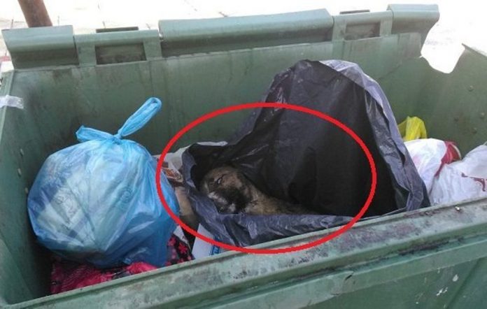 Σκυλί σε κάδο απορριμμάτων βρήκαν σήμερα στον Αμπελώνα μέσα σε σακούλα εργαζόμενοι στην αποκομιδή των απορριμμάτων που ειδοποίησαν αμέσως τη δημοτική αρχή.