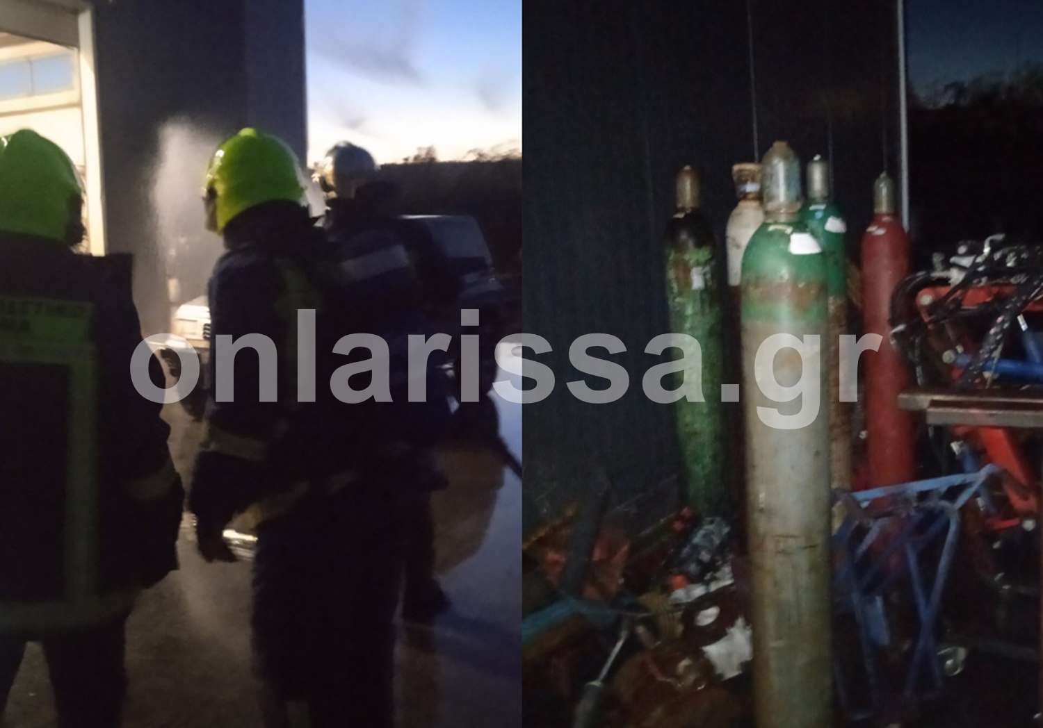 Με επιτυχία ολοκληρώθηκε η επιχείρηση κατάσβεσης φωτιάς που ξέσπασε σε επιχείρηση και συγκεκριμένα σε σιδηρουργείο του Τυρνάβου -το απόγευμα της Πέμπτης- και που εντός αυτού βρίσκονταν φιάλες ασετιλίνης και οξυγόνου.