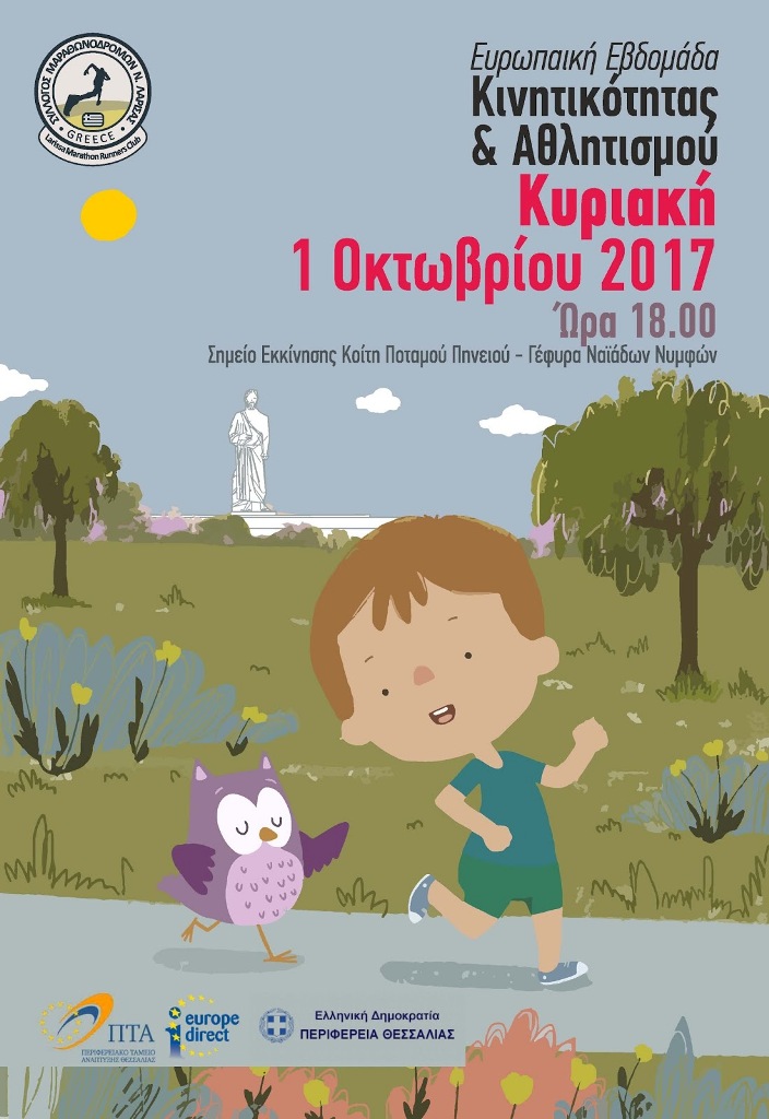 Με αφορμή την Ευρωπαϊκή εβδομάδα Αθλητισμού, ο Σύλλογος Μαραθωνοδρόμων Ν Λάρισας σε συνεργασία με το Περιφερειακό Ταμείο Ανάπτυξης Περιφέρειας Θεσσαλίας και το Europe Direct Περιφέρειας Θεσσαλίας, διοργανώνουν αθλητική δράση για τα παιδιά.