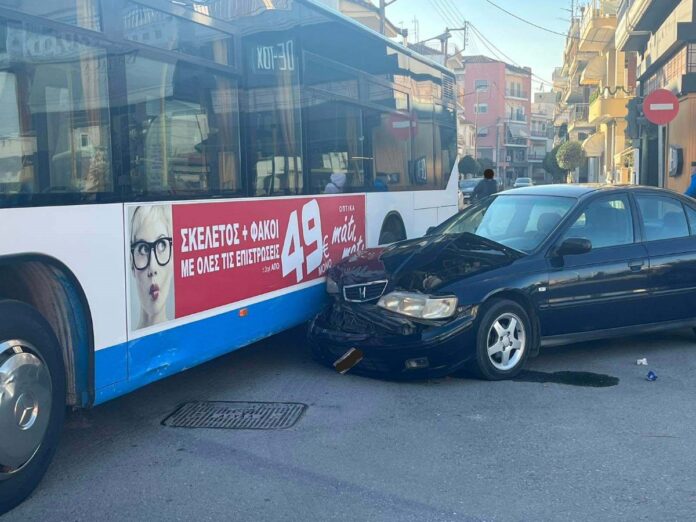 Τροχαίο με σφοδρή σύγκρουση αυτοκινήτου σε αστικό λεωφορείο σημειώθηκε σήμερα, το μεσημέρι της Τρίτης στη Λάρισα.