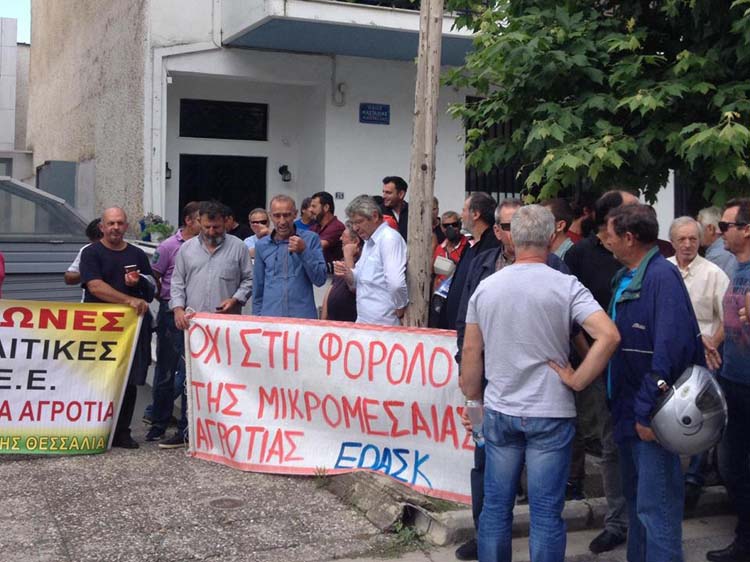 Όπως ανέφερε ο πρόεδρος της ΕΟΑΣ ν. Λάρισας Ρίζος Μαρούδας «..η άγρια φορολογία, οι υπέρογκες ασφαλιστικές εισφορές στον ΕΦΚΑ, οι μεγάλες εισφορές στον ΕΛΓΑ χωρίς κανένα αντίκρισμα στην αποζημίωση, τα κάθε είδους χαράτσια όπως ΕΝΦΙΑ κλπ παίρνουν από τις τσέπες μας πάνω από το 50% του καθαρού εισοδήματος μας. Καθώς επίσης τα «κόκκινα δάνεια» και άλλα δάνεια οδηγούν σε πλειστηριασμούς – κατασχέσεις περιουσιακών στοιχείων (σπιτιών, χωραφιών κλπ.) για οφειλές προς το Δημόσιο και τα ασφαλιστικά ταμεία για το ποσό των 500 ευρώ και άνω.