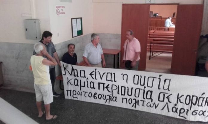 Συγκέντρωση πραγματοποιεί το μεσημέρι της Τετάρτης η Πρωτοβουλία Λάρισας ενάντια στους πλειστηριασμούς και τις κατασχέσεις περιουσίας, έξω από την αίθουσα του Ειρηνοδικείου Λάρισας, όπου, όπως και κάθε Τετάρτη, είναι προγραμματισμένη η σχετική διαδικασία.