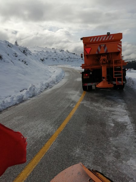 Τα μηχανήματα της Περιφέρειας Θεσσαλίας ήταν από νωρίς χθες στις θέσεις τους και επιχειρούσαν σε όλο το ορεινό δίκτυο του ν. Λάρισας. Αρχικά έριξαν αλάτι σε όλο το δίκτυο και ακολούθως επενέβησαν όπου χρειάστηκε για αποχιονισμός.