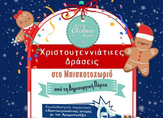 Το Μπισκοτοχωριό της “Δημιουργικής Πόρτας” μετακομίζει στο φουαγιέ του Πολυχώρου Θεσσαλία και υποδέχεται τους μικρούς επισκέπτες για ατελείωτες ώρες παιχνιδιού και δημιουργίας. Το πρόγραμμα περιλαμβάνει: