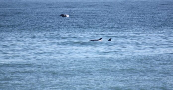 Στη Βελίκα, ομάδα δελφινιών έφθασε μόλις μερικές δεκάδες μέτρα κοντά στην ακτή, δίνοντας στην ευκαιρία στους επισκέπτες να τα δουν και να απολαύσουν το παιχνίδι τους.