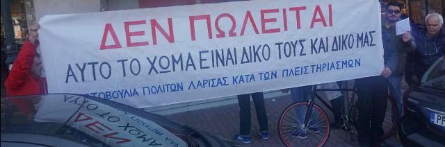 Το μεσημέρι της Τετάρτης θα συγκεντρωθούν στο Ειρηνοδικείο Λάρισας για να σταματήσουν το πλειστηριασμό ενός μικρού διαμερίσματος και ενός χωραφιού 5 στρεμμάτων.
