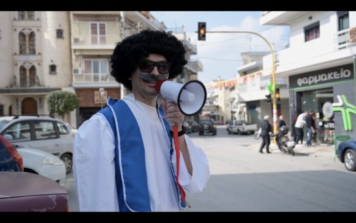 Κάνει μια βόλτα στα καταστήματα της πόλης, συνομιλεί και “πειράζει” τον κόσμο, δίνοντας ραντεβού για την αυριανή καρναβαλική παρέλαση της Κυριακής (26/02) στις 4 το απόγευμα.