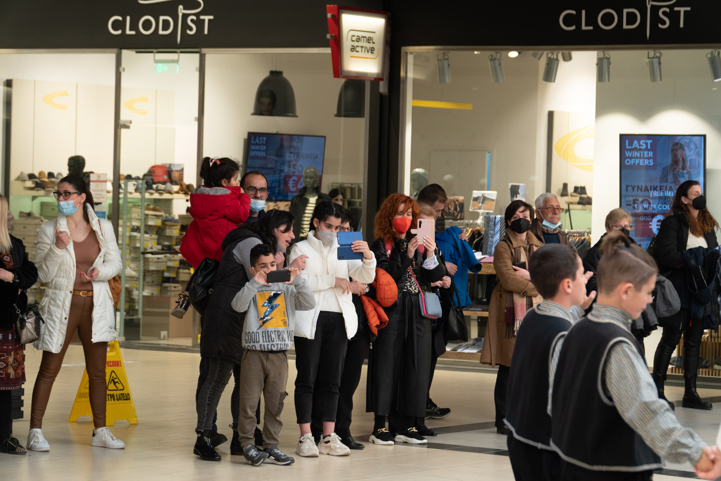 Οι διάδρομοι του εκπτωτικού κέντρου γέμισαν με μικρούς και μεγάλους που έσπευσαν να απολαύσουν τις εορταστικές εκδηλώσεις που περιελάμβαναν: