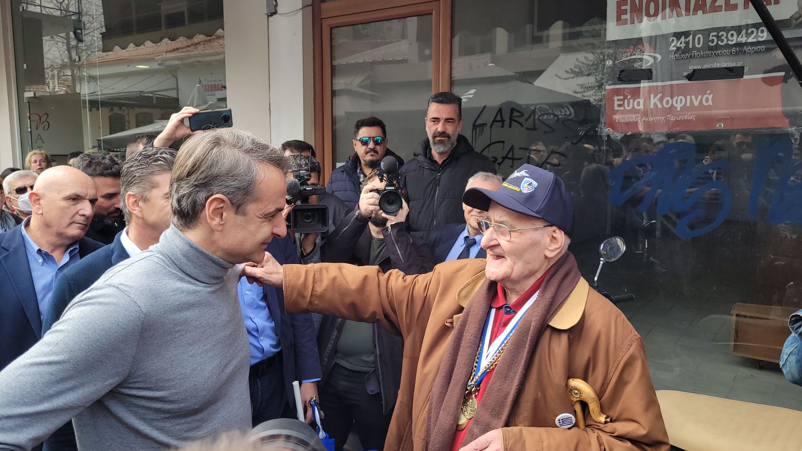 Το… βραβείο επικής ατάκας όμως, ανήκει στην ηλικιωμένη Λαρισαία που έχοντας γνώση του προγράμματος, τον περίμενε υπομονετικά νωρίς το μεσημέρι έξω από το αρχαίο θέατρο, στον πεζόδρομο της Βενιζέλου.