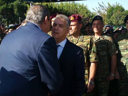 Ιδιαίτερα ευδιάθετος ήταν σήμερα το πρωί κατά την επίσκεψή του στην 1η Στρατία για την τελετή απονομής πολεμικών σημαιών ο Υπουργός Άμυνας Πάνος Καμμένος.